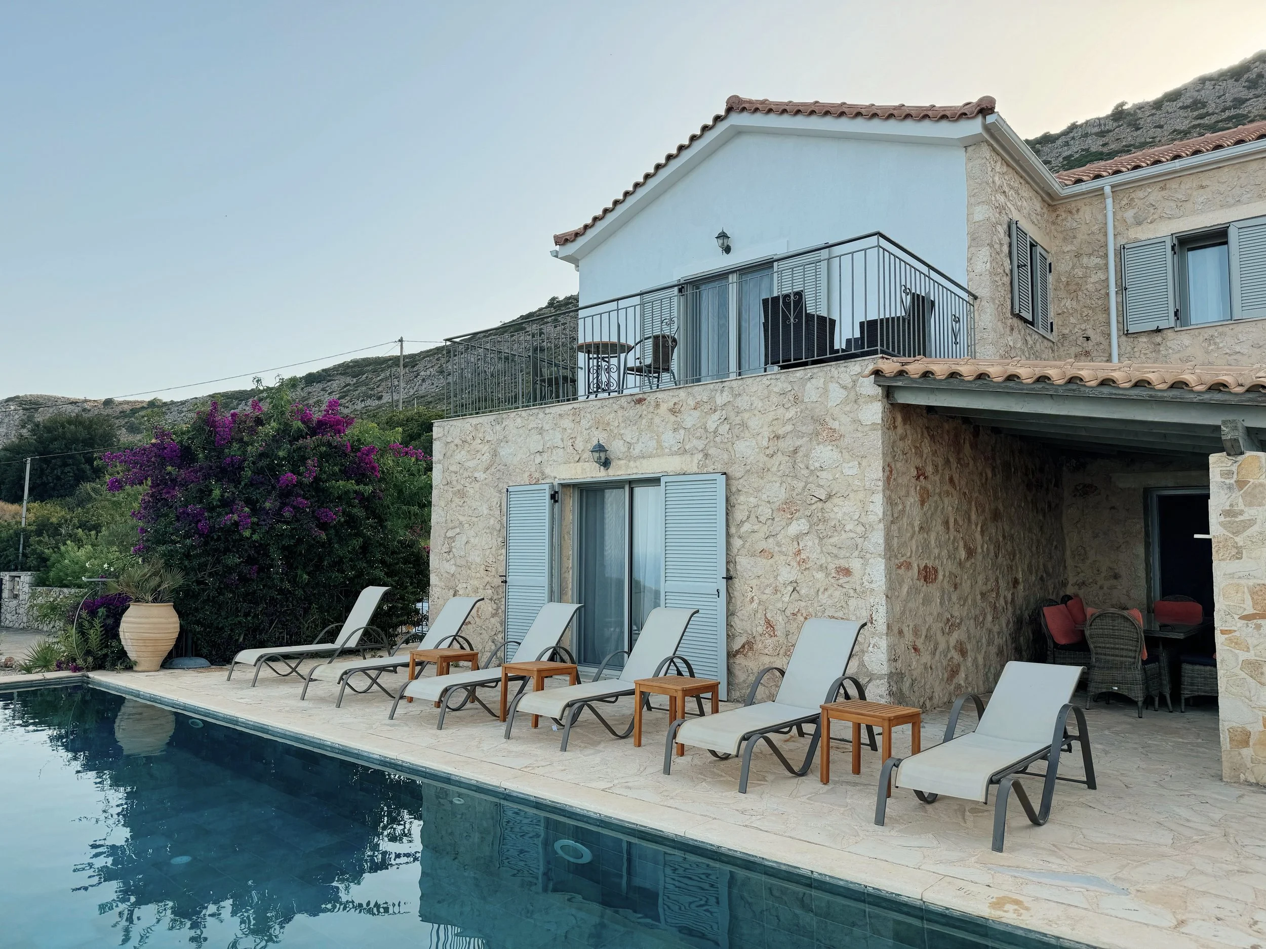 “This was our third visit to Villa Antonio. This year, we decided to make use of the excellent wifi to combine WFH and winding down on our first week, transitioning from busyness to complete relaxation. Villa Antonio has every modern convenience. Laura is an extremely attentive host and Michelle (the property manager) is only a text away. The welcome basket is a lovely touch. The house and pool were spotless and cleaned regularly. The kitchen is well equipped for those who love to cook on holidays. There are ample excellent restaurants in nearby Skala, Katelios and Poros for an evening out (car essential). Skala has well stocked supermarkets. The views from the property cannot be adequately described in a review. The infinity pool, the variety of sunrises, the moonlight on the sea…..we left the bedroom shutters open to wake up to the orange morning sunlight flooding the room. Birds singing, goat bells in the distance. This has to be experienced and is the reason we return. Many thanks Laura.”
